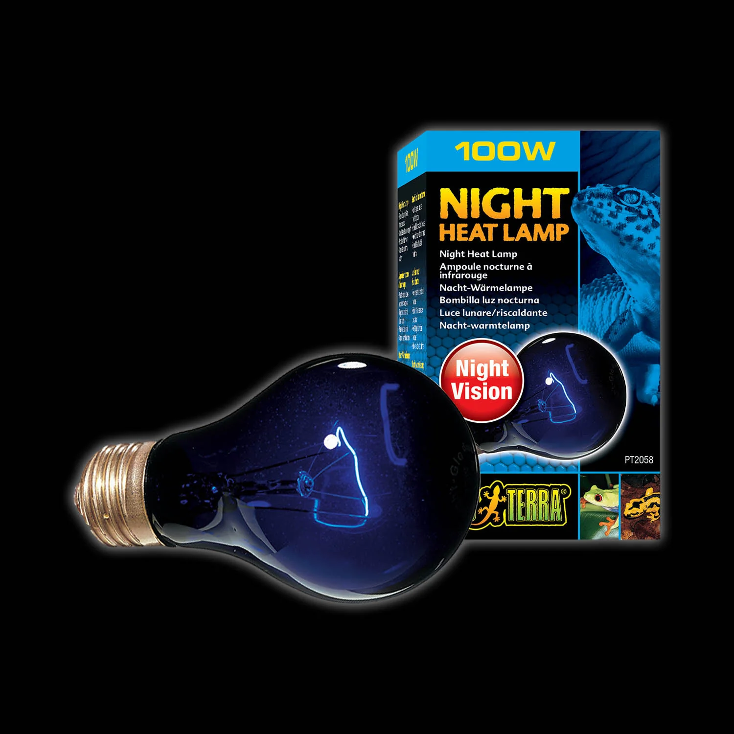 • The bulb simulates natural moonlight to allow nocturnal viewing without disturbing the animal’s day and night cycle. The light emitted is bluish due to the use of blue glass. The heat generated by the bulb is minimal but enough to provide tropical night t