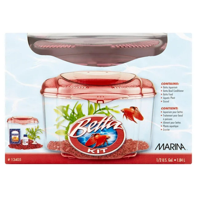 • Designed for convenience, Marina Betta Kits include everything you need to quickly set up, showcase and maintain your betta. Each kit includes a clear plastic aquarium with a uniquely colored top that blends in nicely in a variety of household or office s
