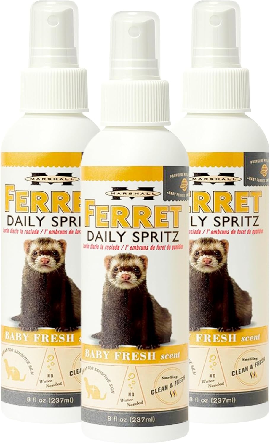 • Keep your ferret’s coat clean, soft, and refreshed with the Marshall Pet Products Ferret Daily Spritz Conditioner, an 8 oz spray designed for gentle daily grooming. Perfect for use between baths, this conditioner hydrates and nourishes your ferret’s coat,