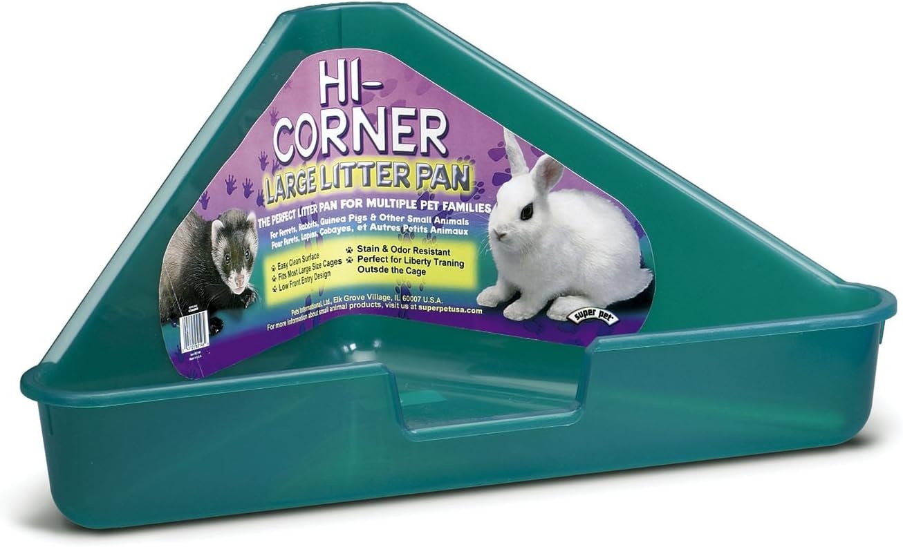 • Our Large Hi-Corner Litter Pan is a giant version of our best selling original design. It's perfect for large ferrets, big bunnies and other pets. The Large Hi-Corner Litter Pan fits into large small animal cages and it can also be used outside the cage f